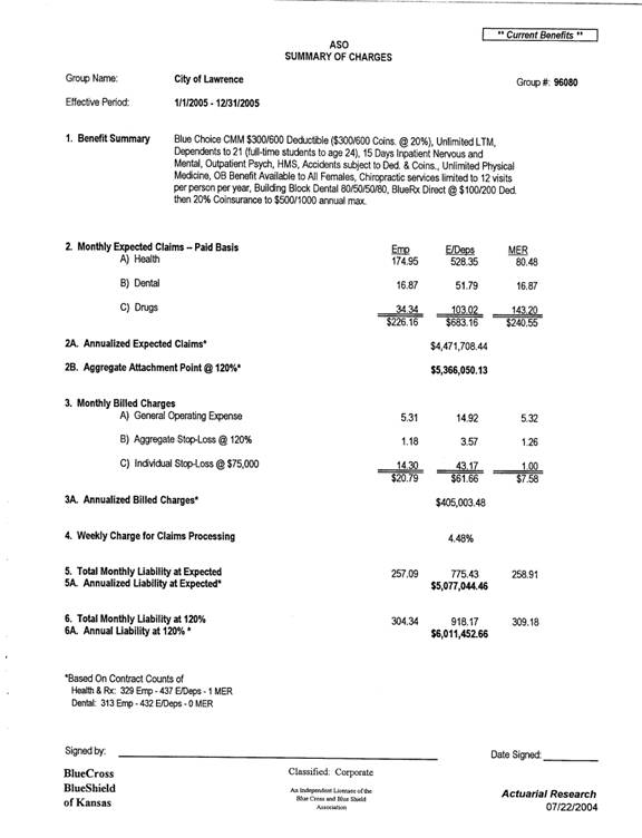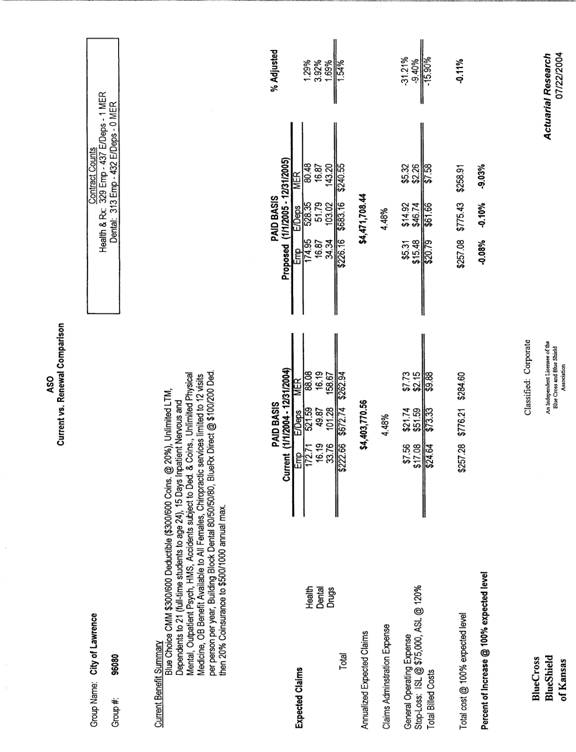 BCBSKS ASO Current v. Renewal Comparison for 2005