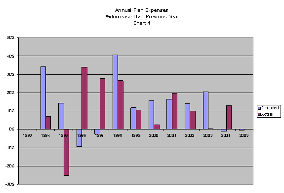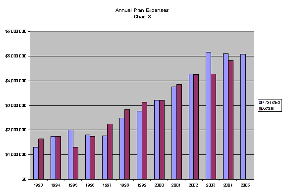 The following chart compares our current plan, budgeted plan, and our expected 2005 plan with recommended plan changes.