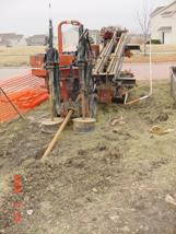 HDPE pipe being pulled by existing lift stations Drilling rig pulling pipe under Clinton Parkway