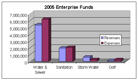 ● Water and Sewer Fund revenue is $100,000 less than the same period last year. The lower water rate for small volume users affecting more users prior to the summer irrigation season may be a reason for lower water revenue. However, sanitary sewer revenue is up over $160,000 in the quarter. Note: The new water/sanitary sewer rates were not effective until January, 2005 and due to the delay that occurs between meter readings and billing, the new rates were not in effect for the full first quarter of 2005.
