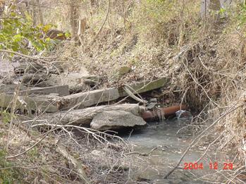Broken service line leaking into creek prior to project