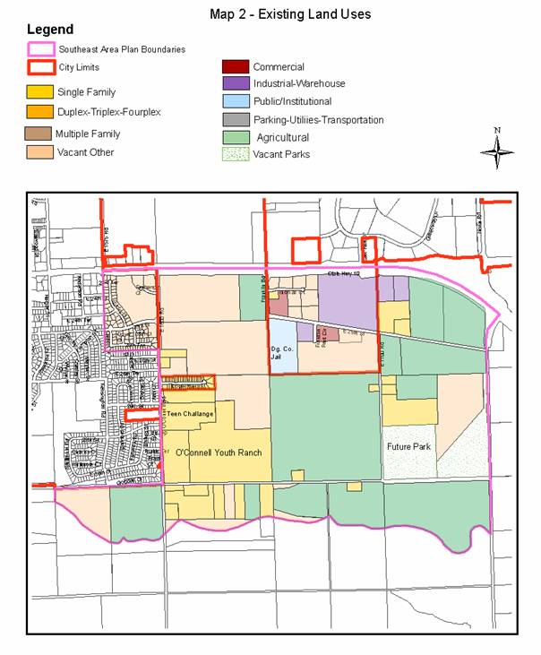 The recommendations contained within this Area Plan are intended to guide the area’s growth patterns as the development of the Southeast Area occurs. As with any area plan, the intent is that it be consistent with the overall adopted comprehensive plan for the community. It is acknowledged that since more current land use information is available for the study area, the land use portions of the comprehensive plan would need to be updated as well.