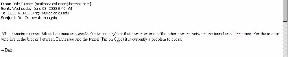 >Before we make a cross walk at 6th and Louisiana I would like to see