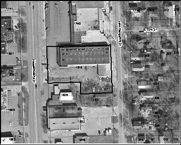 The existing building will be remodeled from the existing footprint of 14,550 square feet to 9,739 gross square feet. A variance was granted on June 2, 2005 by the BZA for a reduction of the required building setback from 25 feet to 0 feet. This variance recognizes an existing building condition along the eastern side of the building. While the building is decreasing in size, the number of parking spaces is increasing. The site will gain an additional six parking spaces. Variances were also granted on June 2, 2005 for a reduction in the required greenspace between parking areas and street rights-of-way from 15 feet to 0 feet along both Massachusetts and New Hampshire Streets. Access to the site is provided by four 25-foot wide drives: one to the east, one to the west, and two at the northwestern edge.