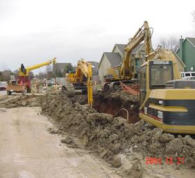 included trench depths, a thick shelf of granite rock, a wintertime construction schedule and excavation in an established neighborhood.