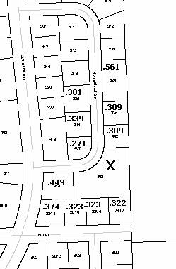 The proposed lot sizes for this replat are quite similar to the surrounding properties. The following figure shows the areas of neighboring lots. The lot areas range from .271 acre to .561 acre with the mean lot area being .360 acre. This plat’s proposed lot areas, .330, .537 and .365 acres, are within the range of existing lots. Two of the proposed lots are near the mean lot size and one is slightly less than the largest neighboring lot.