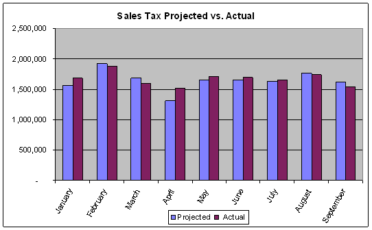 · Another component of the increase in General Fund revenue was a $483,000, or 3.1%, rise in sales tax distributions over 2005. Not including use tax, year to date city and county sales tax distributions are 77.5% of budget.