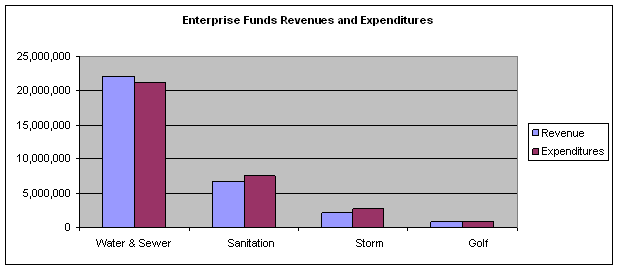· Water and Sewer Fund expenses were down from the prior year due to a decrease in the transfer to cash finance capital projects in 2006. Operating expenses were just over 70% despite large encumbrances for chemicals and maintenance items.