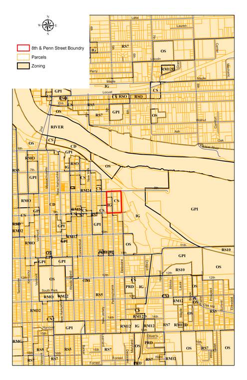 Pursuant to KSA 12-17, 117 (a) (6) & (7), the properties eligible for revitalization are those parcels within the Plan area and as further described in the “Design Guidelines: 8th & Penn Neighborhood Redevelopment Zone” and attached hereto as Exhibit A.