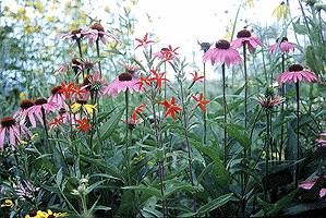 We recommend that the city concurrently migrate toward the use of native species, mostly perennials, in city landscaping. Native landscaping provides better food and shelter for wildlife and promotes biodiversity in our green spaces. Perennial native plants are disease and drought resistant and are naturally well adapted to our climate and region. Therefore, native landscaping dramatically decreases the incidence of plant disease, decreases the need for new plantings, is compatible with xeriscaping which reduces and often eliminates the need to water, reduces weed invasion, and ultimately can reduce expenses. Native plants also honor and promote our Kansas History. Included are some colorful examples of native landscaping.