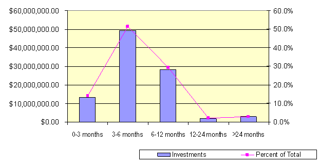 Over 95% of the City’s portfolio has an original maturity of less than twelve months. Only 2.9% of our securities had a maturity longer than twenty four months. The City plans on holding its investments to maturity and has sufficient cash and short-term investments to avoid a liquidity crisis that would force the sale of the longer-term investments.