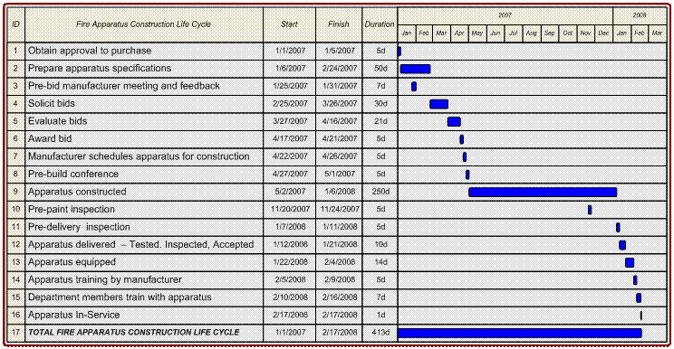 This example illustrates the typical process and time needed to construct a piece of fire apparatus.