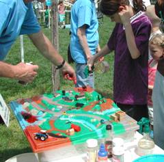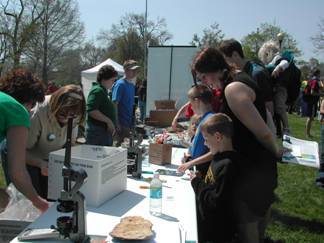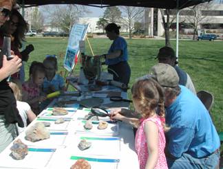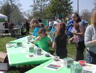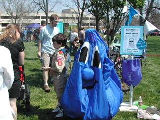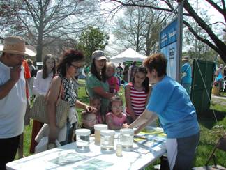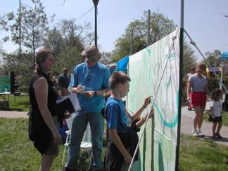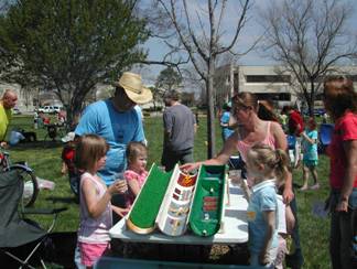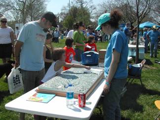 ‘April Showers to Water Towers’ a Water Festival for Douglas County was held in conjunction with other Earth Day activities April 21st in South Park. Information regarding watersheds, stormwater pollution, erosion, our drinking water, ground water and other water quality issues were presented using fun, educational activities. Organizers included the City of Lawrence Stormwater Division and Department of Utilities, Kaw Valley Heritage Alliance, Environmental Protection Agency, Douglas County Farm Bureau, K-State Research and Extension and the Kansas Geological Survey. Over 500 people attended the festival, with over 150 citizens receiving a rain poncho or backpack for visiting all nine activities.