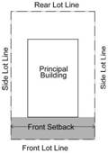 A space extending the full width of a Lot between any Building and the Front Lot Line and measured perpendicular to the Building at the closest point to the Front Lot Line. |