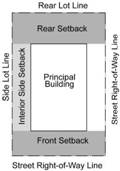The unobstructed Open Space measured from a point on a Principal Building to the Lot Line from the ground upward, within which no Structure shall be located, except as permitted by this Development Code. It is the three-dimensional equivalent of the required Setbacks for every Lot. |