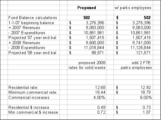 Below is a chart that outlines rate adjustments that would include parks trash collection: