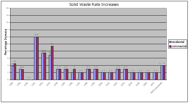 The recommended increase will assist the Solid Waste Division to maintain the quality of services that resulted in an 86 percent overall approval rating in the 2007 Citizens Survey. This approval rating was second only to fire and emergency medical services.