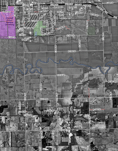 The subject site does not currently have access to water infrastructure. City water lines do extend into the area, south along E 1500 Road, to access the City of Baldwin Main. Lines may be extended east from this line along N 1100 Road to serve the facility. The Utility Department is also considering extending a water main from the north across the Wakarusa River to this facility. There are several options for the extension of water service to the area, but the final determination will be made at the design/build phase of the project.