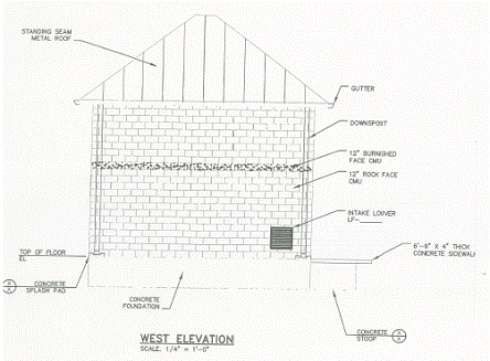 This use will have a minimal impact on the surrounding properties; however, the industrial appearance of the site may detract from the rural character of the area. The pump station’s industrial appearance will be minimized as it is being designed with a peaked roof and stone walls. (Figure 3) Screening will be required from E 1700 Road and the adjacent land to the west as part of the Special Use Permit. The development’s impact on surrounding property owners to the north, east and south will be minimized as the pump station will be buffered by the City owned property which is planned for future parkland. The pump station may have a negative visual impact on the surrounding parkland. The City Parks and Recreation Department have recommended that trees be planted as screening with this phase of the development so they will be established when the property becomes a park. Screening of the facility from the surrounding properties will be a requirement of the Special Use Permit.