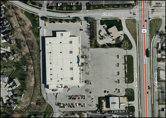 A site plan has been approved for 2727 Iowa [SP-3-16-90] which indicates that parking in excess of that required for the Sears store is provided on the site. The event will last from 9 am to 7 pm which is similar to the operating hours of the surrounding properties. A similar event was held in this location without incident in the summer of 2007. The sale location, figure 1, is at the eastern edge of the parking area and is separated from the residential property by the Sears parking lot and store. The event will be set back the required 25’ from the right-of-way. The applicant will use a 20’ x 30’ tent for the sale and Fire Code requires that it be located more than 20 feet from any building. The location shown in Figure 1 meets these requirements.