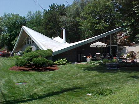 The Double Hyperbolic Paraboloid House is an excellent example of a unique housing type that was constructed in Lawrence after 1945 and is therefore not covered in the MPDF.  The area surrounding Double Hyperbolic Paraboloid House is single family residential with Lawrence High School to the northeast.   Located in the Centennial Neighborhood, the house sits on Lot 8 of Block 3 of the Schaake Subdivision platted in October of 1954.