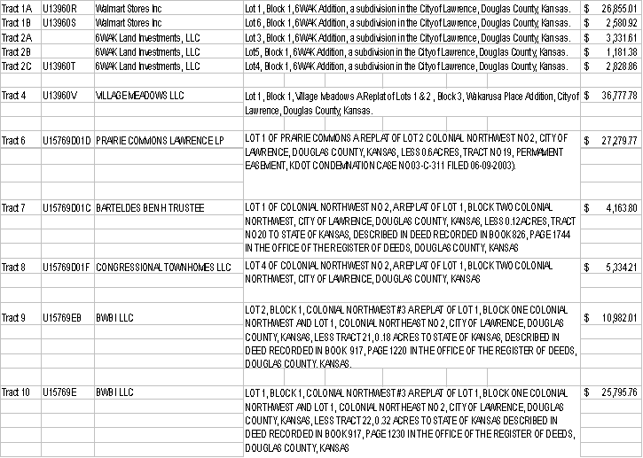 OF LAND IN THE CITY OF LAWRENCE, KANSAS, TO PAY THE COSTS FOR THE CONSTRUCTION OF PUBLIC IMPROVEMENTS AT THE INTERSECTION OF CONGRESSIONAL DRIVE AND 6TH