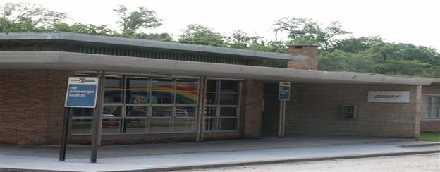 There are two restrooms - one male and one female and neither is ADA compliant. There is one designated handicapped parking space in a brick parking lot with uneven surfaces. The entry at the station is not ADA compliant – the doors are not wide enough for a wheelchair and there is no curb cutout. Additionally, the walkway from the parking lot to the platform and from the street to the entrance needs repair. The drinking fountain and the ticket windows are not ADA compliant. The following items are not present in the station: ticket machines, text telephones, directional signage and a platform lift.