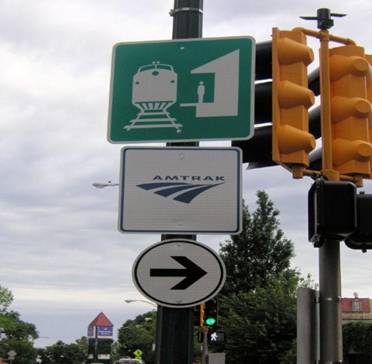 New Amtrak logo signage has been installed by the City to direct visitors to the depot