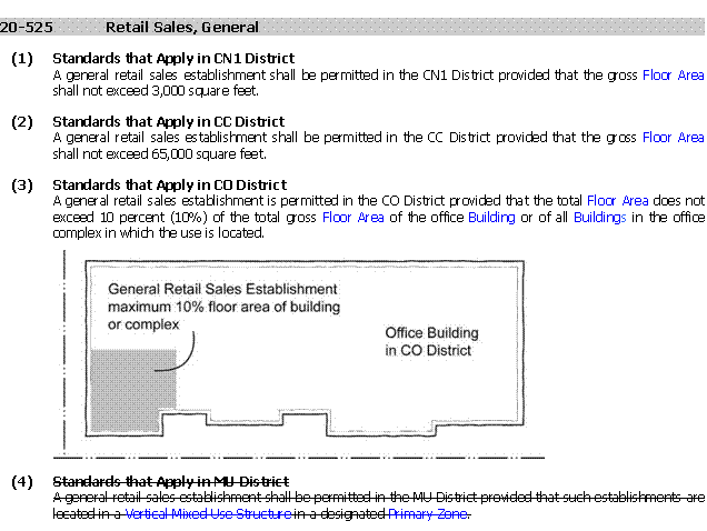 The proposed amendment clarifies that medium retail establishments and specialty retail establishments shall be permitted in the Primary Development Zone when located in a Vertical Mixed Use Structure.