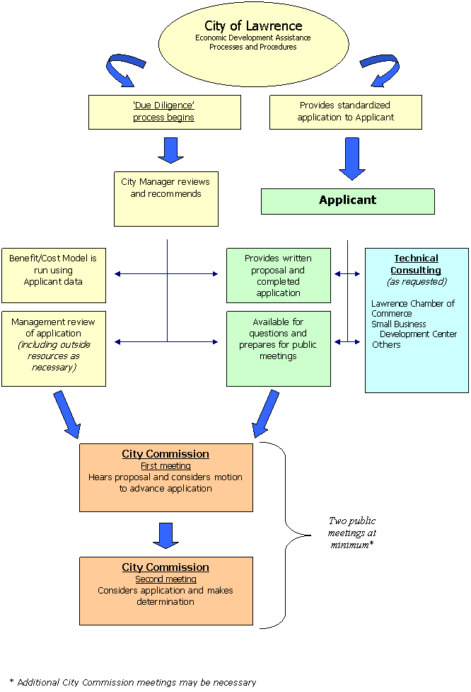 1. Applicant picks up a blank Application form at City Hall (City Manager’s Office) or the Application is downloaded from the Internet. Applicant’s business/project must be located in the City of Lawrence or near the City of Lawrence such that there will be direct economic benefit to the City.