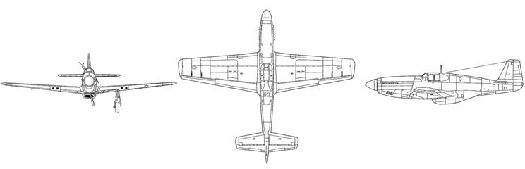 Wingspan 37 feet, 0 inches Length 32 feet, 3 inches Height 13 feet, 8 inches Empty weight 7,450 pounds Max. weight 11,200 pounds Powerplant 1450 hp Rolls-Royce Merlin Series