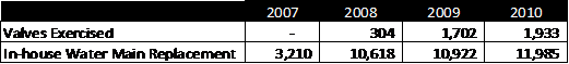 Programs such as the 10-year TV inspection, 4-year section cleaning, root control, CIPP, and targeted preventative maintenance locations have been in place on the sewer collection system since 1998 and have been continued or expanded. A reduction in the number of the customer service calls is one of the benefits from these types of programs as seen on the attached graph. With continued emphasis on these types of programs on the water distribution system, the department believes similar benefits will result.