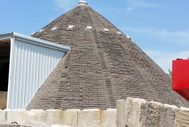 The older salt dome was built in 1995. It is 72 foot in diameter. The roof has a deteriorated condition. It holds approximately 5,000 tons of salt. If the salt gets wet it “activates” meaning when needed for snow and ice control, it will not be as effective in treating ice. The average cost for salt is $55 per ton.
