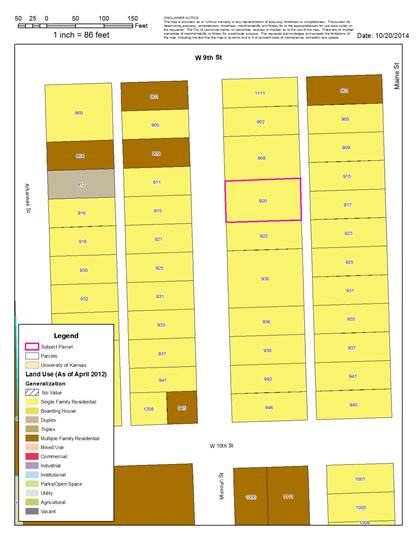 This area was the subject of intense discussion during the adoption of the Oread neighborhood Plan process. Rezoning this part of the neighborhood to an RS district was discussed but was viewed as unreasonable due to the existing pattern of mixed housing types in the neighborhood, its long history of being zoned for the duplex use, and the issue of creating nonconforming properties by changing the zoning to RS.