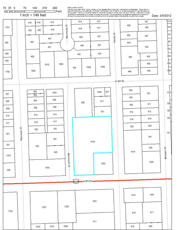 Attachment A: General Location Map of 1516 W. 6th Street. |