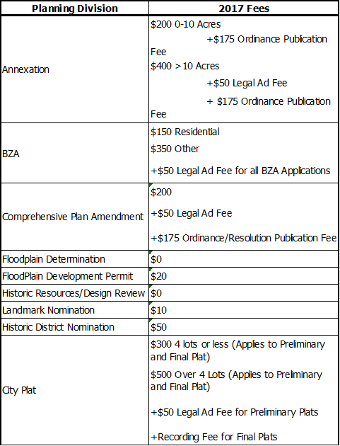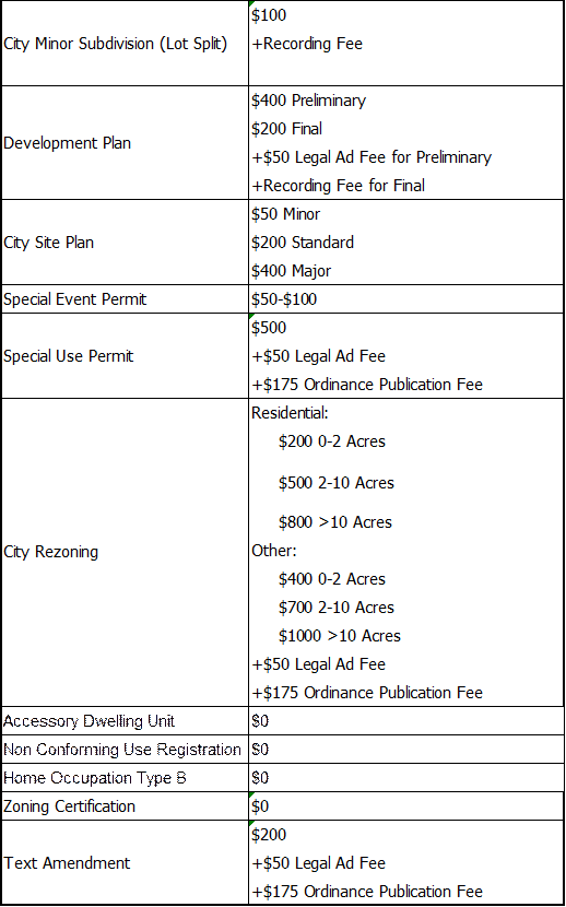 SECTION 1. Pursuant to Chapter 20, Article 13, Section 20-1301(f) of the Code of the City of Lawrence, Kansas, 2015 Edition, and amendments thereto, the Governing Body hereby establishes and adopts the following Planning Fee Schedule: