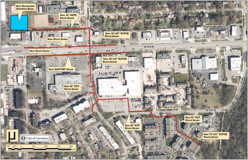 WHEREAS, the governing body of the City of Lawrence, Kansas (the “City”) hereby finds and determines that it is necessary to construct storm sewer improvements within the corporate limits of the City described as the installation of a storm sewer system along Ousdahl Road, 23rd Street and 24th Street, including storm sewer inlets, pavement repair, relocation of sanitary sewer main, property acquisition and a storm sewer detention basin, generally as described on the attached Exhibit A (the “Project”); and